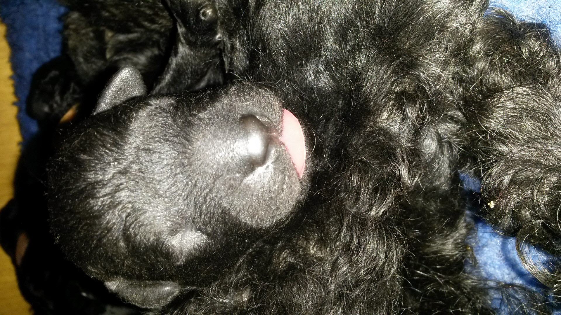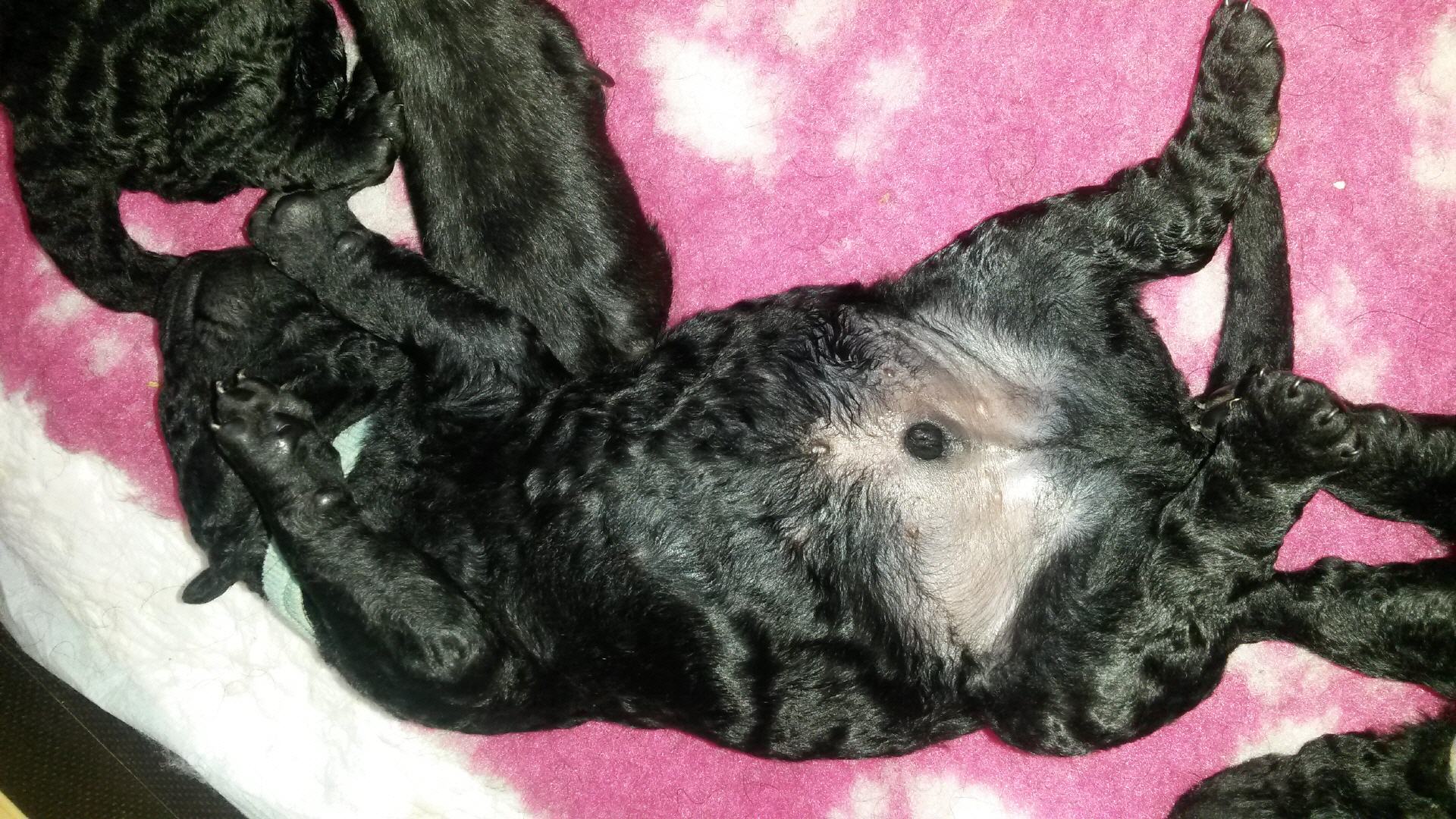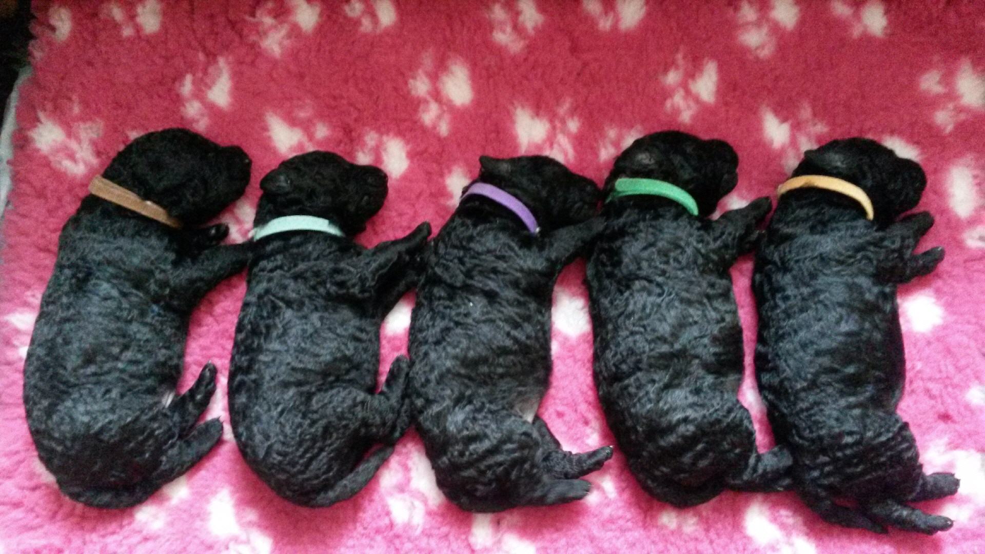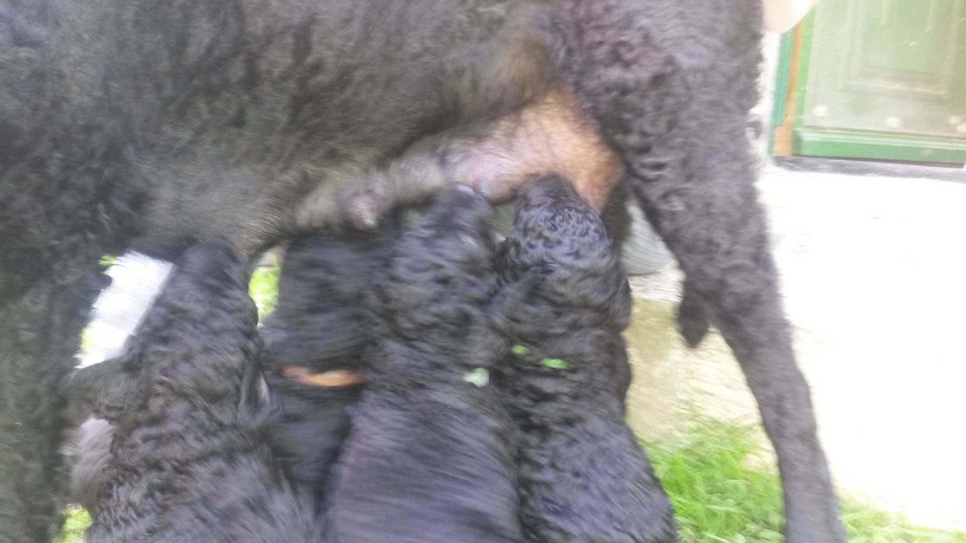 Unsere B-chen haben am 30.05.2016 das Licht der Welt erblickt. Es sind 2 Rüden und 3 Hündinnen. Alle Welpen sind schwarz und hatten ein Geburtsgewicht von über 400 g. Imea und den kleinen Lockenbabies geht es sehr gut, aber sehen Sie selbst: