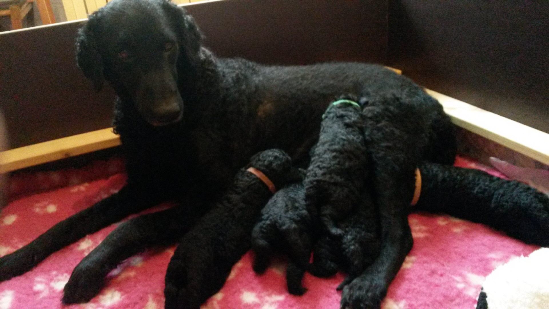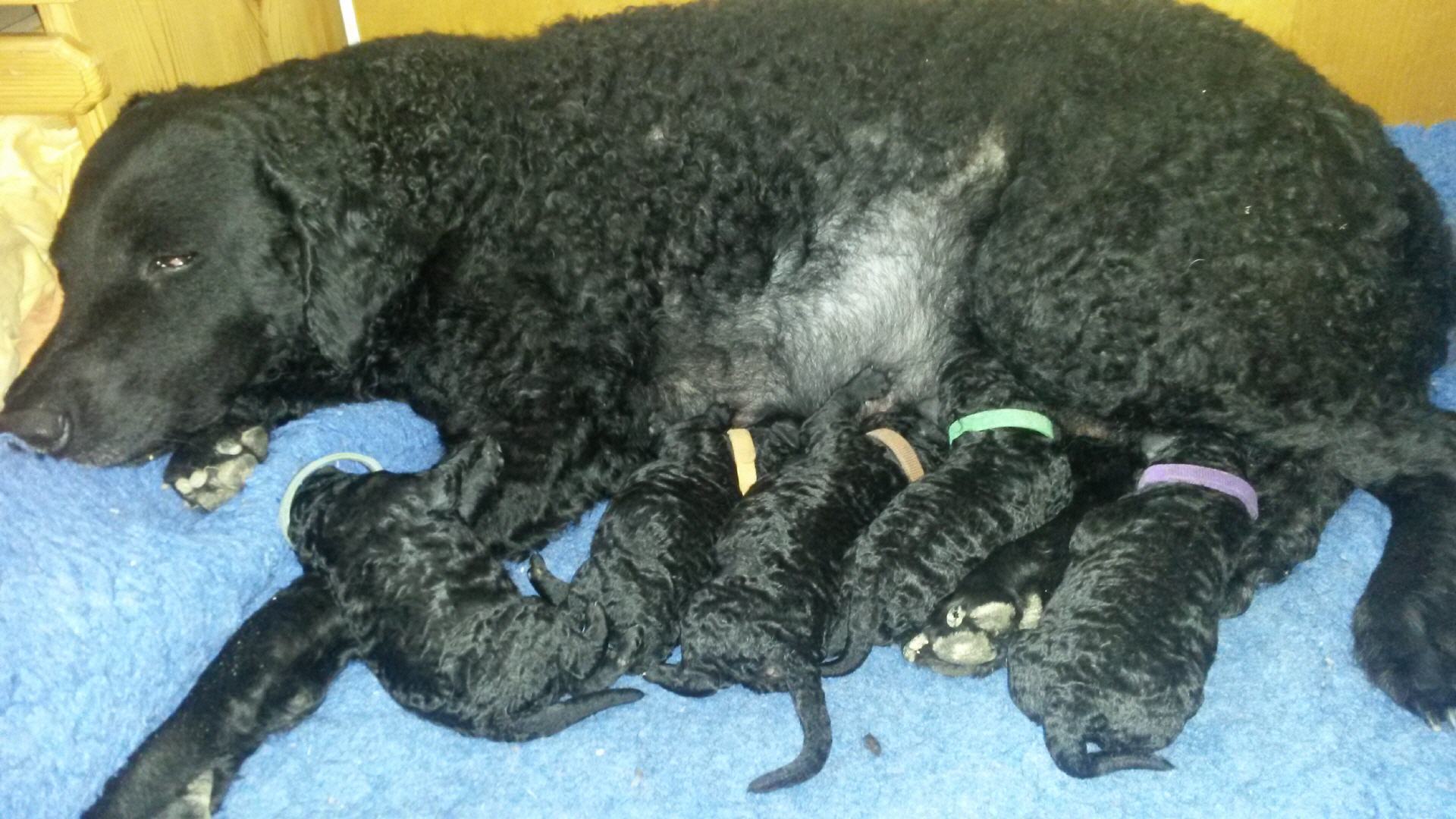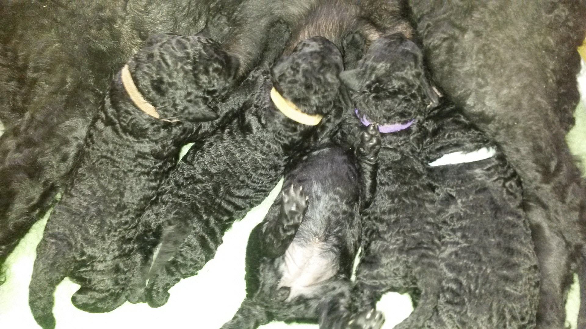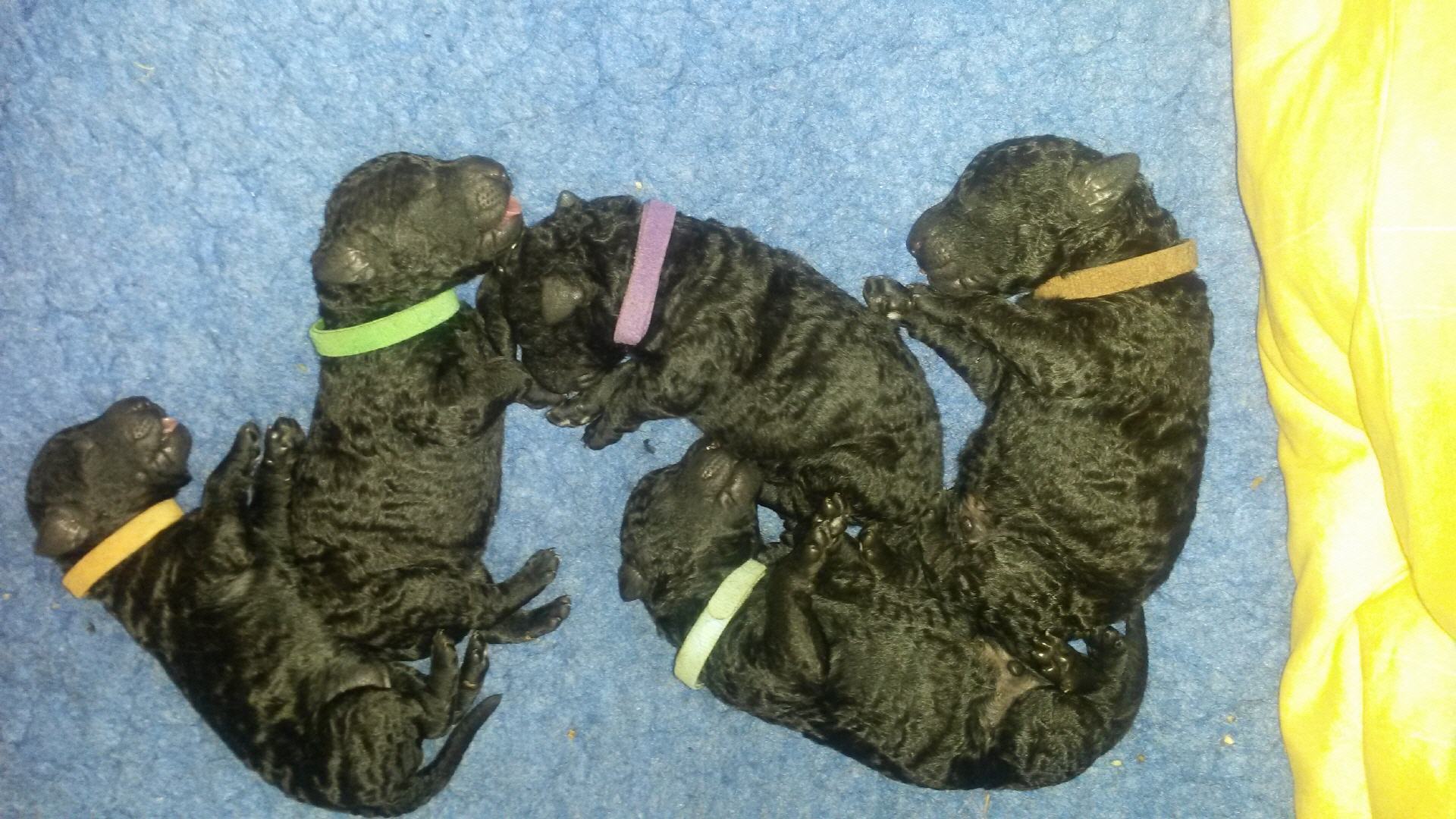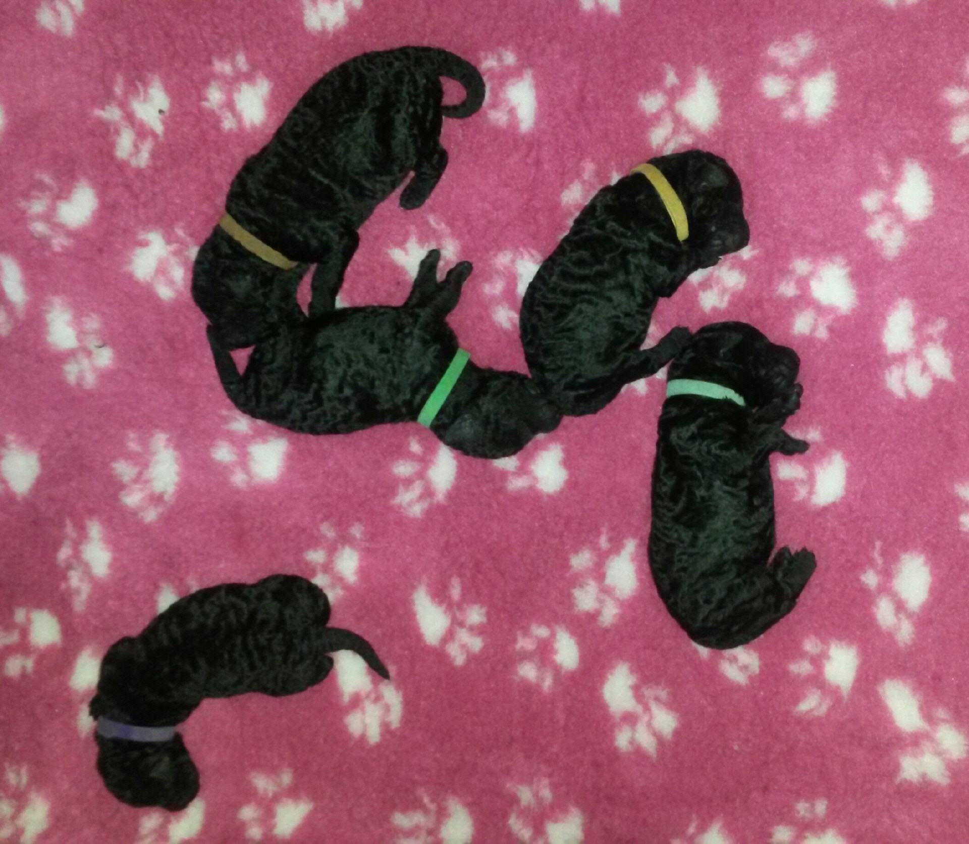 Unsere B-chen haben am 30.05.2016 das Licht der Welt erblickt. Es sind 2 Rüden und 3 Hündinnen. Alle Welpen sind schwarz und hatten ein Geburtsgewicht von über 400 g. Imea und den kleinen Lockenbabies geht es sehr gut, aber sehen Sie selbst: