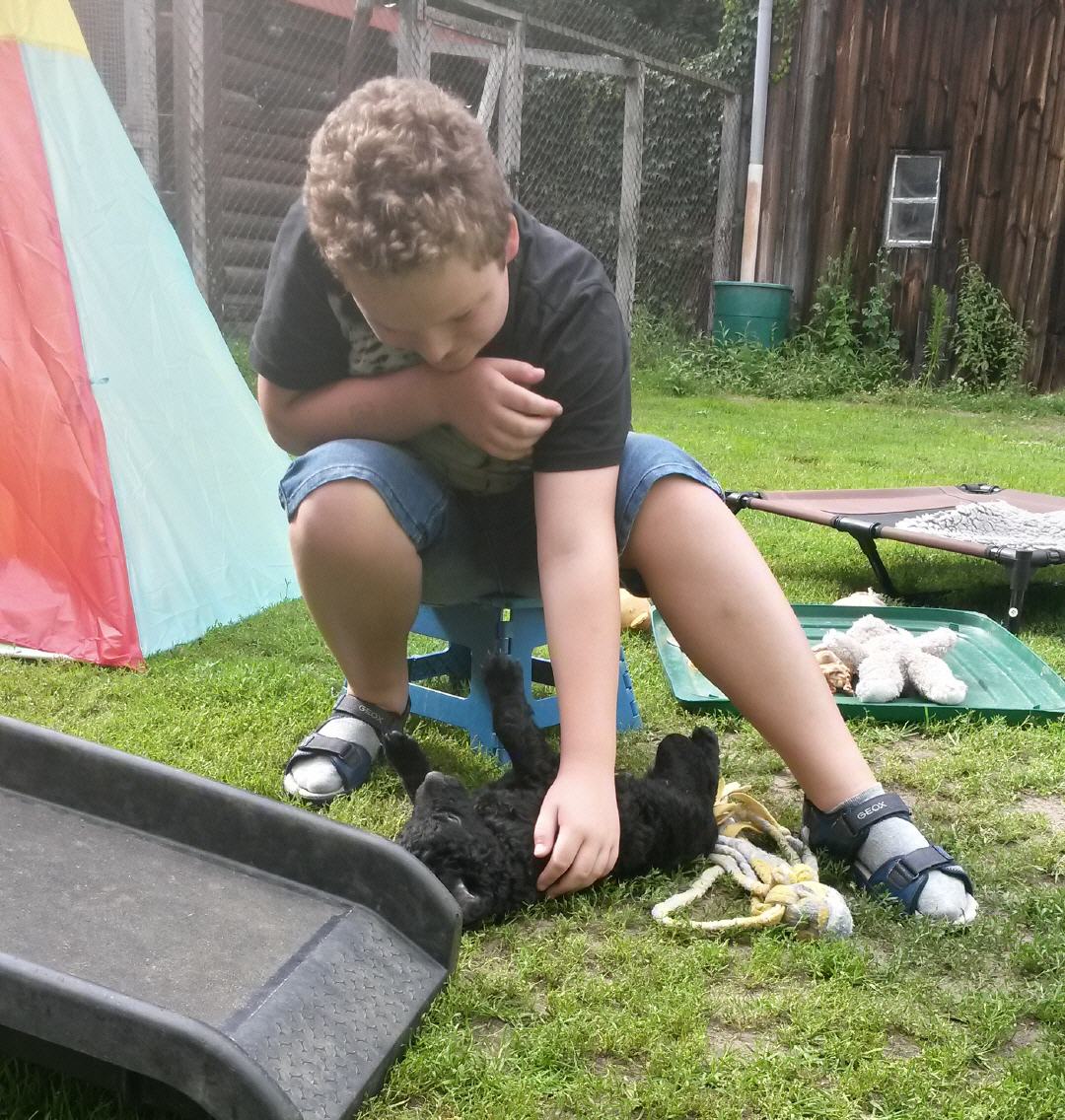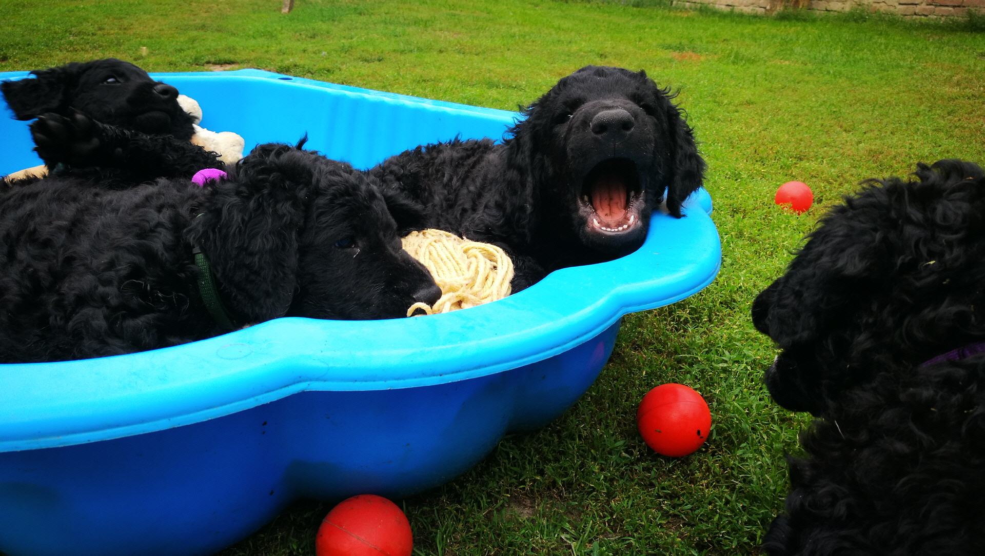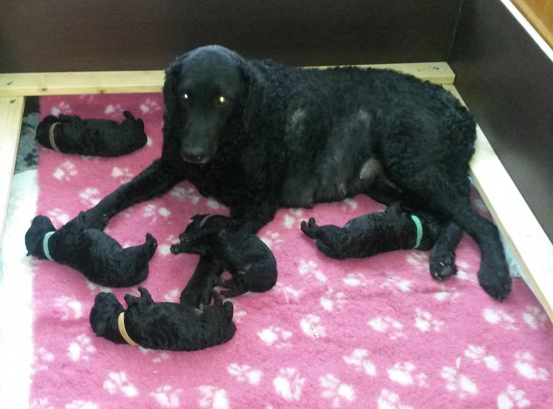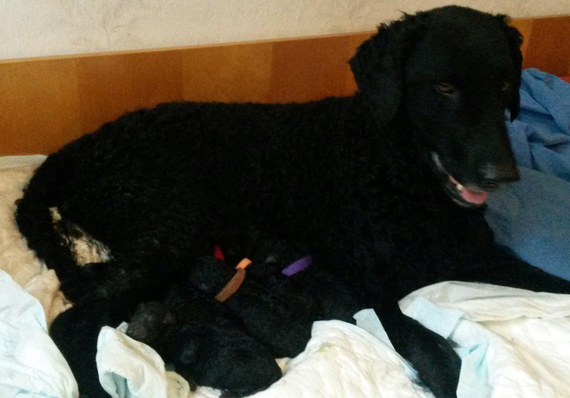 Unsere B-chen haben am 30.05.2016 das Licht der Welt erblickt. Es sind 2 Rüden und 3 Hündinnen. Alle Welpen sind schwarz und hatten ein Geburtsgewicht von über 400 g. Imea und den kleinen Lockenbabies geht es sehr gut, aber sehen Sie selbst: