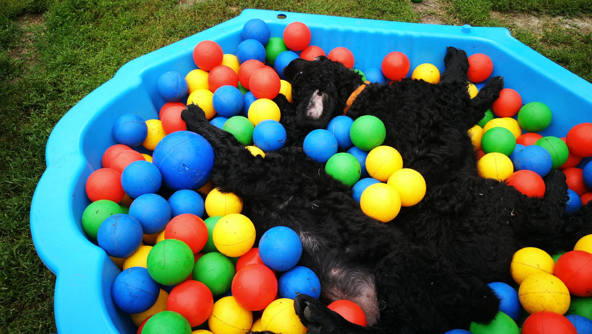 Morgen am 25.07. werden unsere kleinen B-chen schon unfassbare 8 Wochen. Die Zeit verrennt bekanntlich bei so schönen Dingen immer rasend. Die Zwerge haben sich super entwickelt, viele neue Sachen haben sie schon kennengelernt und es macht Freude ihnen bei der Entdeckung der Welt zuzuschauen. Sie sind für alles offen. Schon jetzt hat jeder so seine eigene Persönlichkeit entwickelt. Kleine Clowns sind sie aber alle. Der größte Spaß ist das Bällebad. Wir hatten noch nie einen Wurf, der so viel Freude daran hatte, in die bunten Bälle zu hüpfen. Sie zeigen schon viel Wasserfreude und Tragen, sowie teilweises Zutragen gefällt ihnen auch. Besonders gern lernen sie die herkömmlichen Wildtierarten können, auch wenn nicht alle zur Jagd gehen werden.